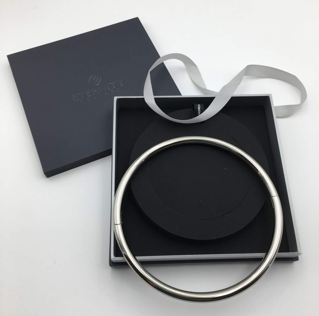 I love these collars. For those that don't know, it's a smooth, almost seamless ring of stainless steel or titanium that literally locks onto your neck without a visible closure mechanism. The collar requires a special tiny little allen key to undo the hidden screws for opening and closing. They are elegant, durable, and utterly gorgeous. As the name implies, the purpose is to indicate long-lasting commitment -- in a kinky way. If you want to take your BDSM dynamic to red carpet levels of glam, this is what you need.To be honest, it's quite a statement piece. Due to the sheer inconvenience and what I might imagine is mortal terror of losing the tiny screws, the collar is intended to be worn more or less continually. Understandably, this isn't great for people that feel constrained by clothing or jewellery when they sleep, for example; so it's definitely not for everyone.